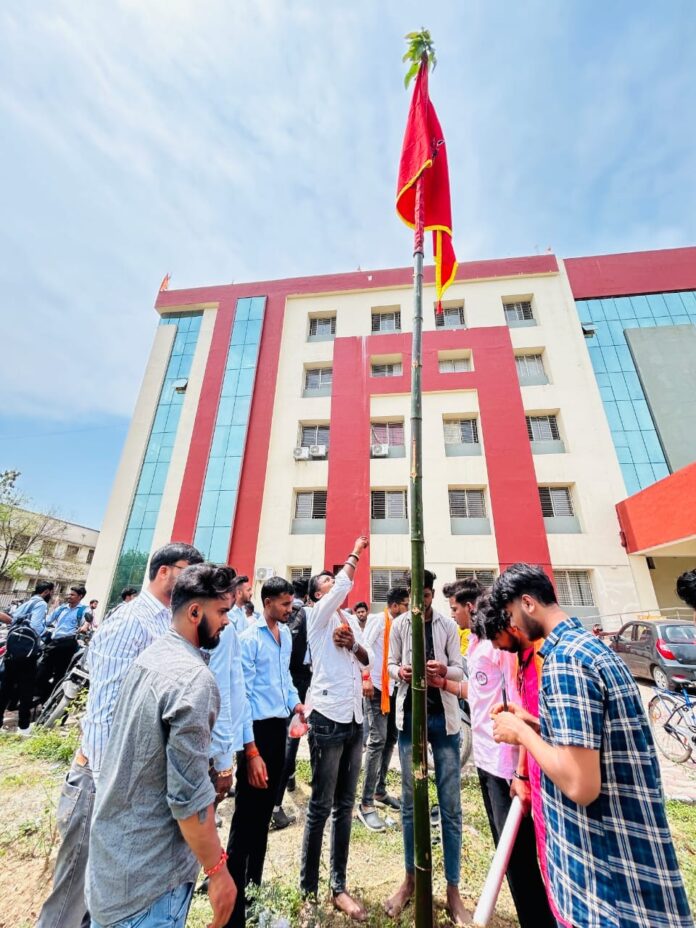 आज दिनांक 09/04/24 को डॉक्टर श्यामा प्रसाद मुखर्जी विश्वविद्यालय नई बिल्डिंग में रामनवमी की तीसरी मंगलवारी और हिंदू नव वर्ष के उपलक्ष में बजरंगबली का महावीरी झंडा लगाया गया ।