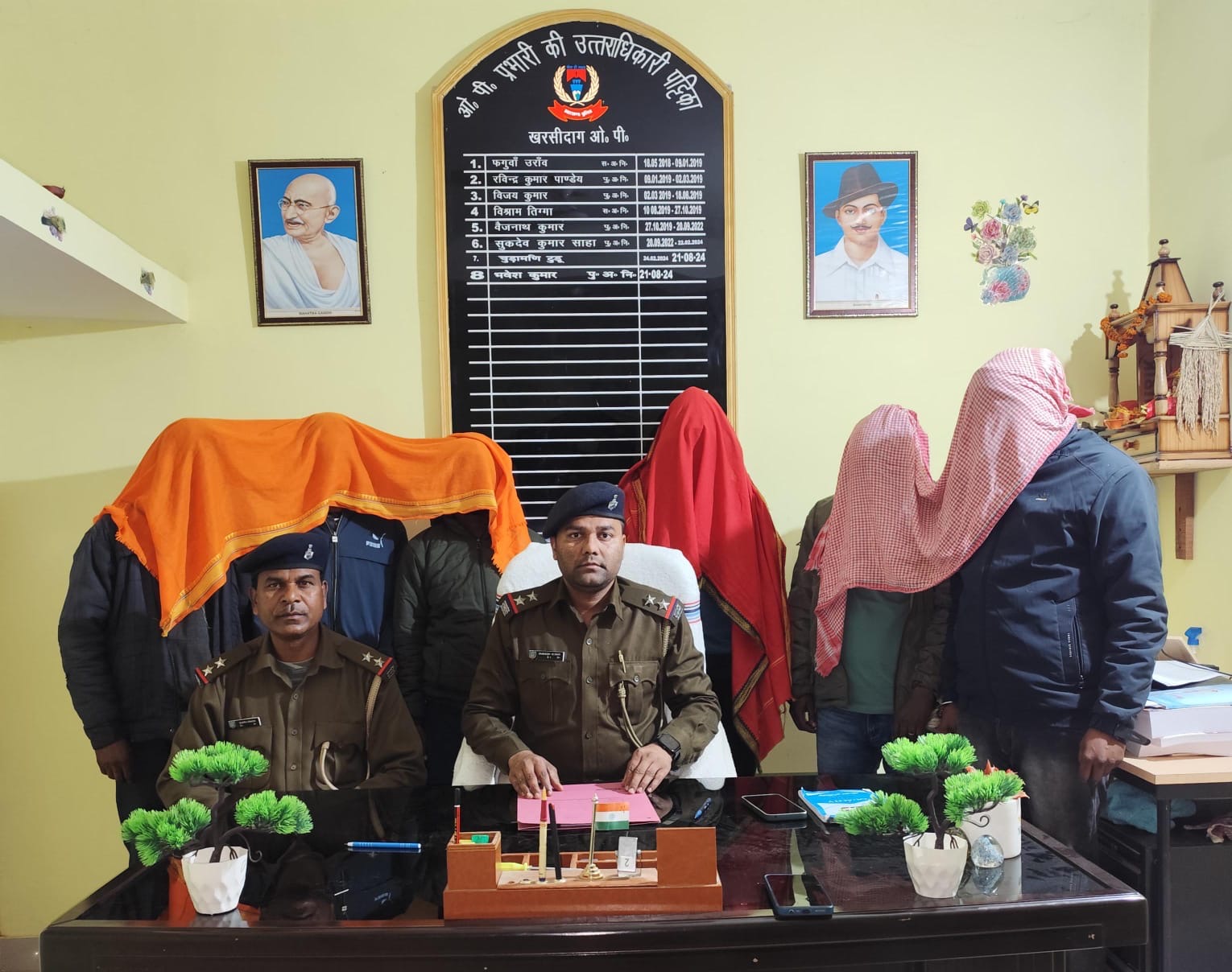 दिनांक-27.12.2024 को आवेदक जितवा उरॉव पे० मंगरा कच्छप सा० तेतरी डहुटोली पो० तेतरी थाना नामकुम (खरसीदाग ओ०पी०) जिला रॉची के द्वारा लगभग ढाई एकड़ जमीन को लेकर दि0-23.12.24 की रात्रि में 1. रतन उरॉव, 2. गोवर्धन 3. अमर मुण्डा एवं अन्य तीन-चार लोगों के द्वारा जमीन को अपने नाम से रजिस्ट्री कर देने अथवा रंगदारी स्वरूप 20 लाख रूपये देने अन्यथा जान से मारकर जंगल में फेक देने संबंधी नामकुम (खरसीदाग ओ०पी०) में लिखित शिकायत की गयी। ओ०पी० प्रभारी खरसीदाग के द्वारा मामले को गंभीरता पूर्वक लेते हुए नामकुम (खरसीदाग) ओ०पी० कांड सं0-493/24, दि0-27.12.24, धारा-308(3)/308(4)/338/336(3)/340 (2)/61 (2) भा०न्या० सं० दर्ज कर वरीय पदाधिकारियों को सूचित किया गया। वरीय पुलिस अधीक्षक, रॉची के द्वारा इस संबंध में त्वरित कार्रवाई हेतु पुलिस उपाधीक्षक (मु०) प्रथम, रॉची एवं पुलिस उपाधीक्षक हटिया रॉची के नेतृत्व में एक छापामारी दल का गठन किया गया, जिसमें नामकुम (खरसीदाग ओ०पी०) के पदाधिकारी एवं खरसीदाग ओ०पी० के सशस्त्र बलों को शामिल किया गया। गठित छापामारी दल के द्वारा त्वरित कार्रवाई करते हुए वादी की हत्या किये जाने की योजना में शामिल तीन प्राथमिकी एवं तीन अप्राथमिकी अभियुक्तों को पकड़ कर उनका संस्वीकृति बयान अंकित किया गया है, जिसमें उनके द्वारा वादी की जमीन को कब्जा करने के उद्देश्य से दि०-23.12.24 की रात्रि में वादी के घर पर जाकर धमकी देने, रंगदारी मांगने एवं जमीन अथवा पैसा नहीं देने पर जान से मारकर फेक देने की धमकी दिये जाने की बात स्वीकार की गयी, साथ हीं यह भी बताया गया कि रतन उरॉव एवं वादी के बीच वर्ष 2020 से जमीन संबंधी विवाद चला आ रहा है। रतन उरॉव के द्वारा वादी की जमीन को अवैध रूप से कब्जा करने का प्रयास किया जा रहा था, जिसका विरोध करने पर रतन उरॉव के द्वारा हत्या की योजना बनायी गयी, जिसके लिये रतन उरॉव के द्वारा गोवर्धन को तीन लाख रूपये की सुपारी की बात तय कर 50 हजार रूपये अग्रिम के तौर पर दिया गया। तत्पश्चात गोवर्धन के द्वारा अपने दोस्त बिन्देश्वर सिंह, अमर मुण्डा, मधवा महतो, मुन्ना उरॉव एवं एक अन्य अपराधी के साथ मिल कर सतरंजी बाजार, तुपुदाना में वादी की हत्या की योजना बनाया गया। इसी दौरान अमर मुण्डा के द्वारा हत्या की घटना को अंजाम देने के लिये हथियार एवं गोली की खरीदादारी की गयी। वादी के द्वारा फिरौती की रकम देने हेतु कुछ समय की मांग किये जाने पर उन्हें समय देकर छोड़ देने की बात स्वीकार करते हुए नववर्ष में वादी की हत्या करने की योजना बनायी गयी। इसी बीच वादी को भनक लगने पर उनके द्वारा दिये गये लिखित आवेदन के आधार पर त्वरित कार्रवाई करते हुए अभियुक्तों के विरूद्ध छापामारी कर छः अभियुक्तों को गिरफ्तार कर लिया गया, जिसके परिणामस्वरूप वादी की हत्या किये जाने की घट