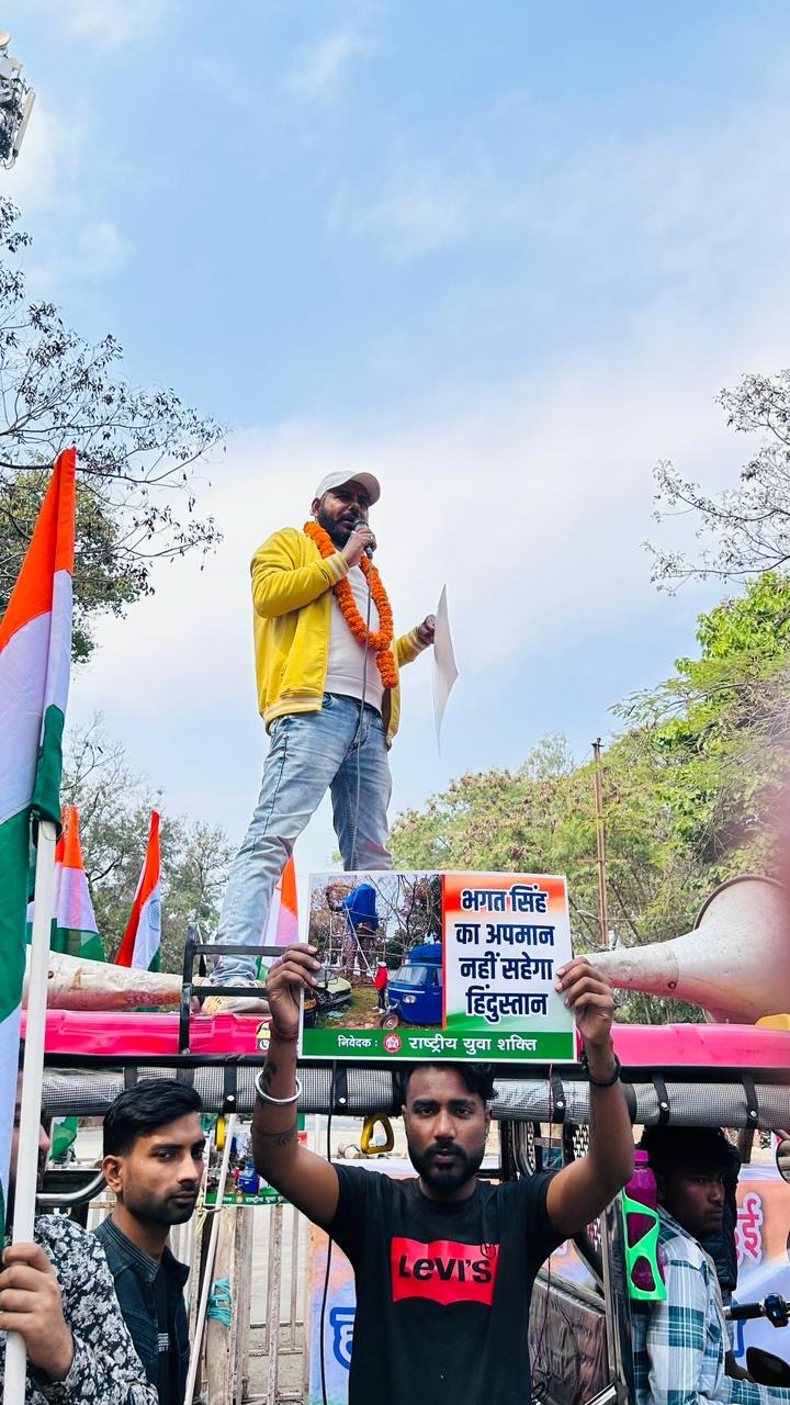 हजारों युवाओं के साथ भगत सिंह की प्रतिमा स्थापना के मुद्दे पर राष्ट्रीय युवा शक्ति द्वारा आक्रोश मार्च पहाड़ी मंदिर के मुख्य द्वार से केंद्रीय अध्यक्ष उत्तम यादव के नेतृत्व में निकाला गया जिसमें सभी युवाओं ने हाथ में तिरंगा एवं कट आउट लेकर पहाड़ी मंदिर से राजभवन तक मार्च निकाला गया, तत्पश्चात राजभवन पहुंचने पर अनिश्चितकालीन धरना में तब्दील हो गया मौके पर अध्यक्ष उत्तम यादव ने कहा कि 1 वर्ष होने को है प्रशासन के द्वारा एवं नगर आयुक्त के द्वारा कई दौर का वार्ता हुआ नगर निगम का चक्कर लगाते लगाते थक गए आज मजबूरन सड़कों पर उतरना पड़ा, भगत सिंह सिर्फ एक महान क्रांतिकारी नहीं वरण हमारी विरासत भी हैं और अपनी विरासत को संरक्षित रखते हुए उन्हें जीवित रखना हमारा धर्म है ताकि आगे आनेवाली पीढ़ी उनकी विचारधारा को आत्मसात कर सके। उन्होंने आगे बताया कि झारखंड क्रांतिकारियों की भूमि रही है और भगवान बिरसा मुंडा की धरती पर भगत सिंह जैसे महान क्रांतिकारी को दो गज भूमि न मिल पाना दुःखद है पर उससे भी दुःखद वह क्षण था जब झारखंड की पावन भूमि पर भगत सिंह का अपमान किया गया। इनकी प्रतिमा को क्रेन से असभ्य तरीके से उठाया गया और पुलिस लाइन में कबाड़ गाड़ियों के बीच में बड़े ही शर्मनाक तरीके से रखा गया। यह सब देखना झारखंड की जनता के लिए असहनीय है और आज युवाओं का इस तरीके से सड़कों पर उतरना यह दिखाता है कि झारखंड के युवा इस घटना से कितने आहत हैं।