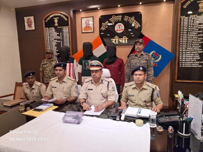 वरीय पुलिस अधीक्षक राँची को दिनांक 08.04. 2024 को पूर्वाहन 03.00 बजे गुप्त सूचना मिली थी कि राँची गुमला एन0एच0 43 मुख्य सडक पर टोल प्लाजा के कोंब 3-4 मीटर पहले कुछ अपराधी हथियार के साथ अपराधी घटना को अंजाम देने की योजना बना रहे है। इस सूचना के सत्यापन एवं आवश्यक कार्रवाई हेतु थाना प्रभारी नगड़ी के नेतृत्व में एक छापामारी दल का गठन किया गया। थाना प्रभारी नगड़ी छापामारी दल का नेतृत्व करते हुये थाना से प्रस्थान किये, जैसे ही छापामारी टीम राँची गुमला मुख्य मार्ग में टोल प्लाजा से करीब 3 से 4 मीटर पहले पहुँची थी तो देखी की सड़क किनारे एक स्विफ्ट डिजायर कार खड़ी है. गाड़ी खड़ी देख छापामारी टीम अपने गाड़ी को उक्त कार के सामने खडा कर दिये। पुलिस गाड़ी को अपने गाड़ी के सामने खडा देख उक्त कार से तीन युवक बाहर निकले तथा भागने का प्रयास करने लगेसशस्त्र बल के सहयोग से थाना प्रभारी नगडी के द्वारा भाग रहे युवक को दौड़ाकर पकड़ा गया। पकडाये युवक का बारी – बारी से तलाशी लिया गया तो एक युवक के पहने पैट के सहारे बायी कमर से खोसा हुआ एक देशी कट्टा मिला, उस युवक से नाम पता पुछने पर उसके द्वारा अपना नाम 1. मो0 कैफ अंसारी, उम्र करीब 24 वर्ष पिता साबीत अंसारी, सा० साहेर मुस्लिम मोहल्ला थाना नगड़ी जिला राँची बताया तथा शेष दोनों का नाम पता पुछने पर अपना – अपना नाम 2. नुरुल अंसारी उम्र करीब 35 वर्ष पिता स्व० रोजिद अंसारी, सा० देवरी ब्लॉक मोहल्ला थाना नगड़ी जिला राँची, 3. रेयाज अंसारी उम्र करीब 23 वर्ष पिता हुसैन अंसारी सा0 चेक पोस्ट नगड़ी थाना नगडी जिला राँची बतायेपकडाये हथियार के संबंध में वैध कागजात की माँग करने पर कोई वैध कागजात प्रस्तुत नहीं किया गया तद्दोपरांत 1. एक देशी कट्टा, 2. स्विफ्ट डिजायर कार रजिस्ट्रेशन नं0- JH01EJ- 2286 को विधिवत जप्त सूची तैयार करते हुये जप्त किया गया तथा उपरोक्त तीनों अपराधकर्मियों को गिरफ्तार किया गया।