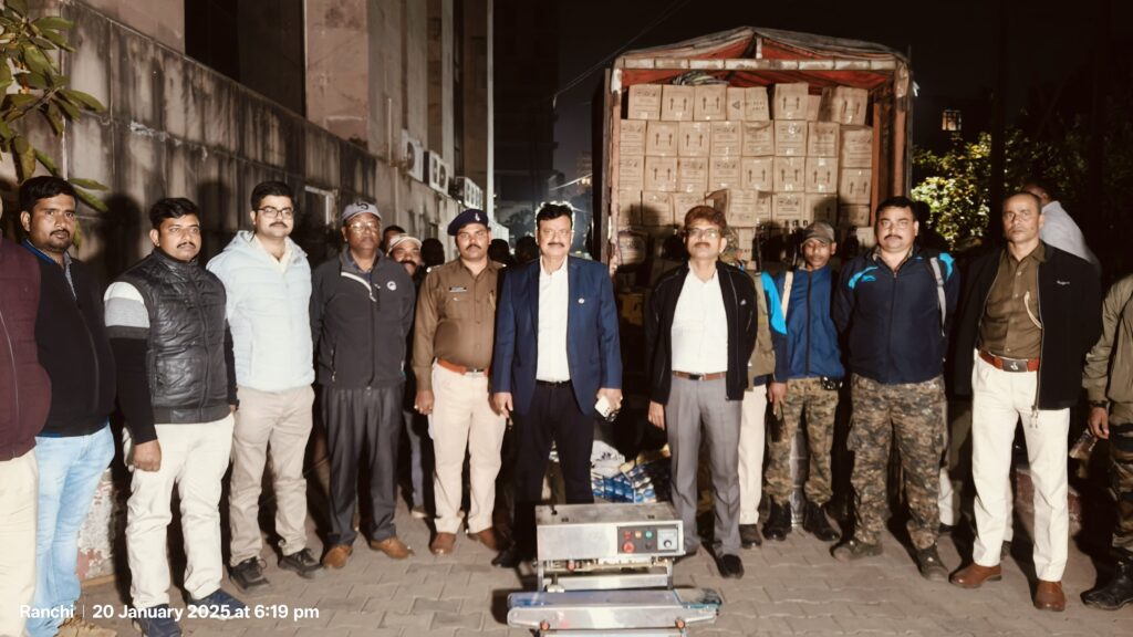 HomeBlogपाँच सौ पेटी अवैध शराब पुलिस ने पकड़ा Blog पाँच सौ पेटी अवैध शराब पुलिस ने पकड़ा By newsranchi January 20, 2025 0 113 Share FacebookTwitterPinterestWhatsApp राँचीजिले के सिल्ली इलाके में उत्पाद विभाग और पुलिस ने संयुक्त रूप से कार्रवाई करते हुए करीब 500 पेटी अवैध अंग्रेजी शराब लदा ट्रक पकड़ा है।जांच में जुटी है पुलिस। Share FacebookTwitterPinterestWhatsApp Previous articleरामगढ़ पुलिस ने अपहृत व्यक्ति को कमरे से सकुशल बरामद किया दो अपहरणकर्ता हथियार और स्कॉर्पियो के साथ पकड़े गए (पूरा देखे )Next articleपुलिस अधीक्षक ग्रामीण रांची के द्वारा लापुंग, बेड़ों एवं मांडर थाना में आहूत जन शिकायत समाधान कार्यक्रम का मॉनिटरिंग किया। RELATED ARTICLES Blog थार रॉक्स से कुचलकर हत्या करने वाले आरोपी गिरफ्तार (पूरा देखे) February 12, 2026 Blog मुख्यमंत्री श्री हेमन्त सोरेन से श्री शिव बारात आयोजन महासमिति पहाड़ी मंदिर, रांची के प्रतिनिधिमंडल ने की मुलाकात। February 11, 2026 Blog चास नगर निगम में झामुमो की तैयारी तेज, मेयर पद के लिए उमेश ठाकुर उम्मीदवार January 31, 2026 Most Popular थार रॉक्स से कुचलकर हत्या करने वाले आरोपी गिरफ्तार (पूरा देखे) February 12, 2026 मुख्यमंत्री श्री हेमन्त सोरेन से श्री शिव बारात आयोजन महासमिति पहाड़ी मंदिर, रांची के प्रतिनिधिमंडल ने की मुलाकात। February 11, 2026 हजारीबाग पुलिस ने ब्राउन शुगर तस्कर को पकड़ा January 31, 2026 चास नगर निगम में झामुमो की तैयारी तेज, मेयर पद के लिए उमेश ठाकुर उम्मीदवार January 31, 2026 Load more