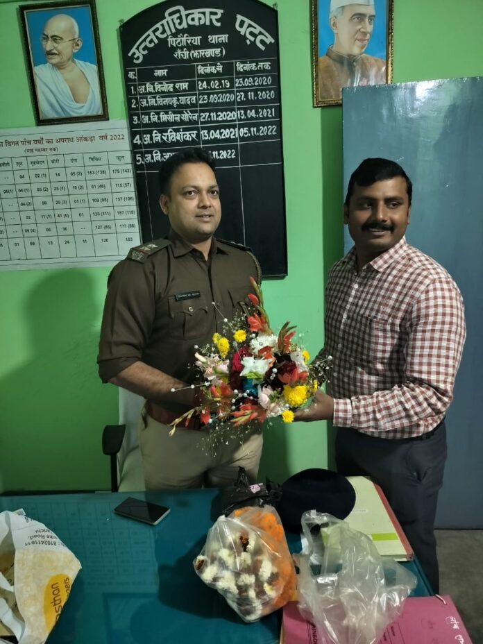 Homeराज्य-शहरपिठोरिया नये थाना प्रभारी ने प्रभार लिया राज्य-शहर पिठोरिया नये थाना प्रभारी ने प्रभार लिया By newsranchi February 23, 2024 0 409 Share FacebookTwitterPinterestWhatsApp पिठौरिया: पिठौरिया थाना में नए थाना प्रभारी के रूप में गौतम कुमार राय ने शुक्रवार को पदभार ग्रहण किया। उन्होंने निवर्तमान थाना प्रभारी अभय कुमार से पदभार लिया। TagsPolice Share FacebookTwitterPinterestWhatsApp Previous articleछवि रंजन जमानत याचिका पर सुप्रीम कोर्ट से सुनवाई टल गईNext articleविभिन्न जिले से योगदान दिया 107 पु०अ०नी०/ 01 स०अ०नी० को रांची जिला के थाना/ओ०पी० में अविलंब योगदान करने का आदेश। RELATED ARTICLES Health सदर अस्पताल रांची में पहली बार बांए (left) तरफ के गॉलब्लैडर स्टोन की सर्जरी की गई। October 6, 2025 अपराध पटना पारस हॉस्पिटल शूटआउट का July 17, 2025 News ❇️ राँची:बच्चियां,महिलाएं डीजीपी को सीधे तौर पर कर सकती हैं शिकायत July 14, 2025 Most Popular कुख्यात राहुल दुबे गिरोह के चार अपराधकर्मी गिरप्तार, जिनमें से दो अपराधकर्मी पुलिस बल के साथ मुठभेड़ में गोली लगने से हुए घायल।(पूरा देखे) October 10, 2025 विधायक सीपी सिंह ने स्वास्थ्य मंत्री इरफान अंसारी को दिया जवाब (पूरा पढ़े) October 8, 2025 सदर अस्पताल रांची में पहली बार बांए (left) तरफ के गॉलब्लैडर स्टोन की सर्जरी की गई। October 6, 2025 भाजपा विधायक सीपी सिंह के लिए भावुक हुए स्वास्थ्य मंत्री जी (पूरा देखे) October 4, 2025 Load more