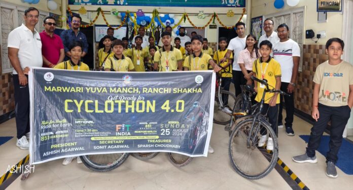 मारवाड़ी युवा मंच रांची शाखा ने 25.08.24 दिन रविवार को राष्ट्रीय खेल दिवस के अवसर पर साइकिलएथोन् 4.0 कार्यक्रम का आयोजन किया। कार्यक्रम मे राणी सती मन्दिर लेन स्थित श्री राणी सती विद्यालय के छात्रों ने भाग लिया। सभी प्रतिभागी राणी सती विद्यालय से शनि मन्दिर, बकरी बाजार, लोहिया चौक होते हुए शहीद चौक से वापिस राणी सती विद्यालय तक साइकिल रैली निकली गयी। सभी प्रतिभागी छात्रों के बीच गिफ्ट हैंपर बाट कर कार्यक्रम को संपन्न किया गया।