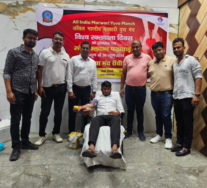 मारवाड़ी युवा मंच रांची शाखा ने विश्व रक्तदाता दिवस पर रक्तदान शिविर का आयोजन किया