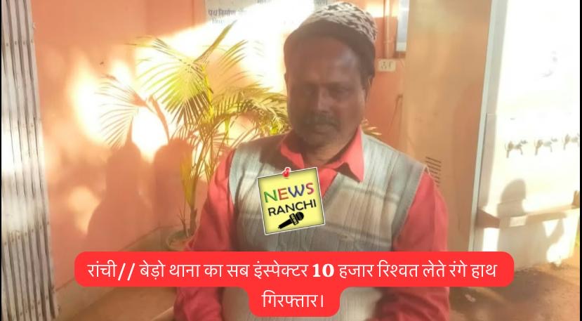 HomeNewsरांची// बेड़ो थाना का सब इंस्पेक्टर 10 हजार रिश्वत लेते रंगे हाथ... Newsranchi रांची// बेड़ो थाना का सब इंस्पेक्टर 10 हजार रिश्वत लेते रंगे हाथ गिरफ्तार। By newsranchi January 9, 2026 0 81 Share FacebookTwitterPinterestWhatsApp TagsacbcrimeJharkhandnewsranchiPoliceranchi Share FacebookTwitterPinterestWhatsApp Previous articleदो युवक और एक युवती गिरफ्तार लालपुर अंकित सिंह गाड़ी चढ़ाये जाने के मामले में (पूरा देखे)Next articleहजारीबाग से फरार 03 सजायाफ्ता कैदी महाराष्ट्र सोलापुर से गिरफ्तार RELATED ARTICLES ranchi हजारीबाग पुलिस ने ब्राउन शुगर तस्कर को पकड़ा January 31, 2026 Blog रांची पुलिस ने बच्चा चोरों के बड़े गिरोह का किया पर्दाफाश, 12 बच्चे किये गये रेस्क्यू, महिला समेत 13 बच्चा चोर गिरफ्तार (पूरा देखे) January 18, 2026 News कांके रोड से ब्राउन बेचने वाले गिरफ्तार पहले भी जा चुके हैं जेल इसी मामले में (पूरा देखें) January 15, 2026 Most Popular मुख्यमंत्री श्री हेमन्त सोरेन से श्री शिव बारात आयोजन महासमिति पहाड़ी मंदिर, रांची के प्रतिनिधिमंडल ने की मुलाकात। February 11, 2026 हजारीबाग पुलिस ने ब्राउन शुगर तस्कर को पकड़ा January 31, 2026 चास नगर निगम में झामुमो की तैयारी तेज, मेयर पद के लिए उमेश ठाकुर उम्मीदवार January 31, 2026 दिलचस्प होगा चास नगर निगम- महापौर का चुनाव January 29, 2026 Load more