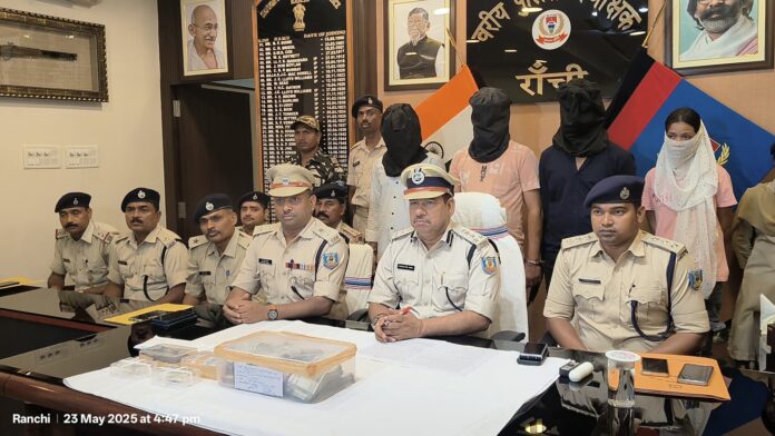 दिनांक-22/23.05.25 को पुलिस उप-महानिरीक्षक सह वरीय पुलिस अधीक्षक राँची को गुप्त सूचना मिला कि कोतवाली थाना अन्तर्गत पुरानी राँची के नूर नगर में रोहतास (सासाराम) से एक लड़का भारी मात्रा में ब्राउन शूगर लेकर आया है। इस सूचना के आलोक में पुलिस अधीक्षक नगर के नियंत्रण में पुलिस उपाधीक्षक कोतवाली के नेतृत्व में एक टीम का गठन किया गया। उक्त छापामारी टीम के द्वारा नूर नगर (खेत मोहल्ला) में अहसन जुनैद के घर पर मकान मालिक के समक्ष विधिवत करीब 03:00 बजे रात्रि को सेजल खान के कमरे में छापामारी किया गया, जिसमें एक लड़का मिला, जिसे नाम पूछने पर अपना नाम सूरज कुमार पिता बबन साह बड़की खरारी, थाना-करहगर, जिला-रोहतास, बिहार बताया। इसके बाद विधिवत् तलाशी लेने पर उसके पैंट के पॉकेट से काला प्लास्टिक में लपेटा हुआ ब्राउन शूगर वजन करीब 110 ग्राम ब्राउन शूगर बरामद हुआ। इसके बाद कमरे की तलाशी लेने पर सेजन खान और सूरज कुमार के सोये हुए बेड में बिछावन के नीचे छिप रखा हुआ नगद 4,50,000/ रूपया बरामद किया गया। इसके बाद ब्राउन शूगर के बारे में बैध कागजात प्रस्तुत करने को बोला गया तो वह कोई कागजात प्रस्तुत नहीं कर पाया। आगे दोनों से बरामद पैसा के बारे में पूछताछ करने पर बताया कि यह पैसा ब्राउन शूगर से बिकी से प्राप्त हुआ है। आगे पूछताछ करने पर बताया कि दोनों काफी समय से सासाराम से ब्राउन शूगर लाकर राँची में बिकी करते है, दोनों के बीच प्रेम प्रसंग भी है। गिरफ्तार प्राथमिक अभियुक्त का नामः-1. सूरज कुमार उम्र 25 वर्ष पे० बबन साह सा०-बड़की खरारी, थाना-करहगर, जिला-रोहतास, बिहार। 2. सेजल खॉन उम्र 22 वर्ष पे० मो० सरवर सा०-नूर नगर, पुरानी राँची नियर सौकत कबाड़ी दुकान, थाना-कोतवाली, जिला-रॉची। काण्ड में बरामद समानों की सूचीः-1. मादक पदार्थ (ब्रउन शूगर) जिसका वनज 110 ग्राम। 2. नगद पैसा 4,50,000 / रूपया। 3. दो मोबाईल फोन 4. एक स्कूटी Jho1 Dh-3302 छापामारी में शामिल पुलिस पदाधिकारियों एवं कर्मियों का नामः-1. श्री प्रकाश सोय. पुलिस उपाधीक्षक कोतवाली, रॉची। 2. श्री मनोज कुमार पु०नि० सह थाना प्रभारी सुखदेवनगर। 3. श्री आदिकांत महतो पु०नि० सह थाना प्रभारी कोतवाली। 4. पु०अ०नि०उमेश चन्द्र महतो, सुखदेवनगर थाना। 5. पु०अ०नि० चन्द्र मोहन बारला कोतवाली थाना। 6. पु०अ०नि० हराधन बेसरा, डेलीमार्केट थाना। 7. पु०अ०नि० संतोष कुमार शर्मा, हिन्दपीढ़ी थाना। 8. स०अ०नि० बंसत महतो डेलीमार्केट थाना। 9. स०अ०नि० सूर्यवंती उरॉव सुखदेवनगर थाना। 10. अन्य पुलिस कर्मी