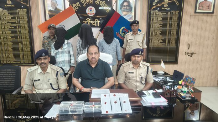 दिनांक 27.05.202 को समय करीब 03.00 बजे सूचना प्राप्त हुई कि विद्यानगर रोड नं0-3 कार्मेल होस्टल के नजदीक संत मेरी स्कूल के सामने हरमू, थाना-सुखदेवनग राँची के पास से सफेद रंग की होंडा एक्टीवा स्कुटी जिसका रजि०न०- JH01GA 4848 में तीन अज्ञात लड़के सवार होकर एक छोटे बच्चे के गले से लॉकेट छिन कर भाग गये। उक्त सूचना के आलोक में वरीय पदाधिकारियों को सूचित किया। इस संबंध में बादी के लिखित आवेदन के आधार सुखदेवनगर थाना कांड संख्या-274/24, दिनांक-27.05.2025, धारा- 304(2)/318(2)/338/336(2) बी०एन०एस० दर्ज किया तथा आदेशानुसार कांड में संलिप्त अभियुकों के विरूद्ध वरीय पदाधिकारी के निर्देशन में सी०सी०टी०वी० फुटैज का अवलोकन कर संदिग्ध की गिरफ्तारी हेतु छापामारी अभियान चलाया गया। छापामारी के क्रम में पहाड़ी मंदिर के पास, थाना सुखदेवगनगर, जिला राँची के पास उक्त स्कूटी में सवार तीन लड़के 1. रौशन कुमार महतो उर्फ बल्लू उम्र करीब 18 वर्ष, पिता गणेश महतो पता जय प्रकाश नगर, नियर श्री राणी संती मंदिर लेन रातु रोड, थाना सुखदेवनगर, जिला राँची 2. अभिषेक कुमार सिंह उम्र करीब 18 वर्ष, पिता सुरेश सिंह पता न्यू पुलिस लाईन मिसिर गोन्दा, थाना गोन्दा, जिला राँची को विधिवत गिरफ्तार ज्ञाप बनाकर गिरफ्तार किया गया एवं चोरी में प्रयुक्त स्कूटी वाहन को विधिवत् प्रस्तुती सह जप्ती सूची बना कर जप्त किया गया है । इनलोगों के निशानदेही पर इरगु रोड कुम्हार टोली स्थित भोला सन्स एंड ज्वेलर्स नामक दुकान से इस कांड में छिनतई की गई सोने जैसा लॉकेट एवं अन्य कांडों में छिनतई की गई लॉकेटों को बरामद किया जिसे विधिवत जप्त किया एवं छिनतई की गई समानों की खरीद बिक्री करने वाले सोनार सतीश कुमार सोनी, पिता स्व० भोला साव, पता किशोरगंज रोड नं0 01, थाना सुखदेवनगर, जिला राँची को विधिवत गिरफ्तार किया गया। गिरफ्तार व्यक्तियों के अपराध स्वीकारोक्त बयान में आये नाम के व्यक्तियों का सत्यापन कर अग्रीम कार्यावाही किया जा रहा है।