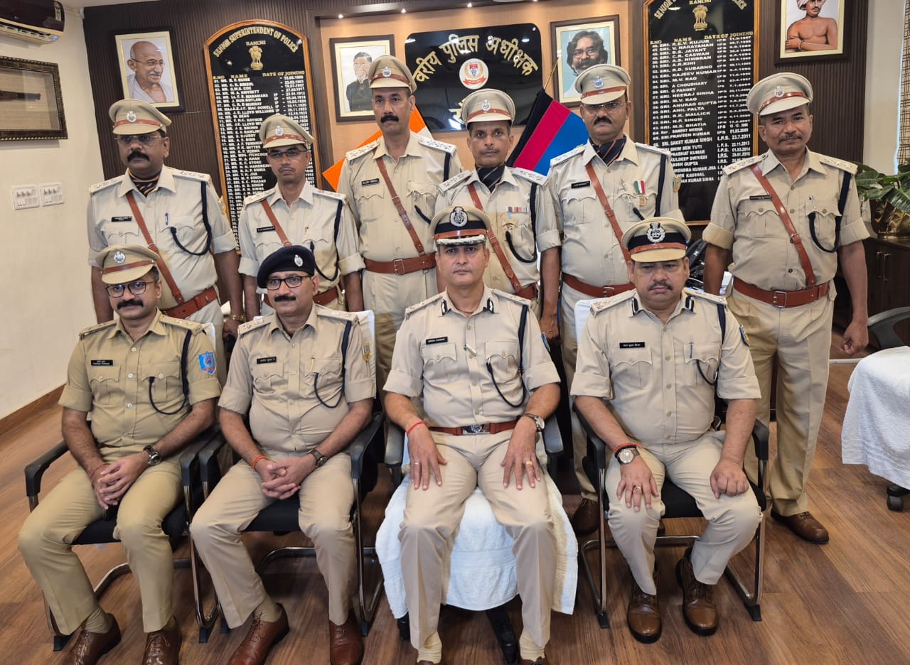 आज दिनांक 11.07.25 को रांची जिला अंतर्गत पुलिस उपमहानिरीक्षक सह वरीय पुलिस अधीक्षक,रांची के कार्यालय कक्ष में आयोजित पिपिंग कार्यक्रम में पुलिस महानिरीक्षक दoछoपक्षेत्र, पुलिस उपमहानिरीक्षक सह वरीय पुलिस अधीक्षक रांची, पुलिस अधीक्षक (नगर), पुलिस अधीक्षक (ग्रामीण) रांची के द्वारा नव प्रोन्नत 06 पुलिस उपाधीक्षकों