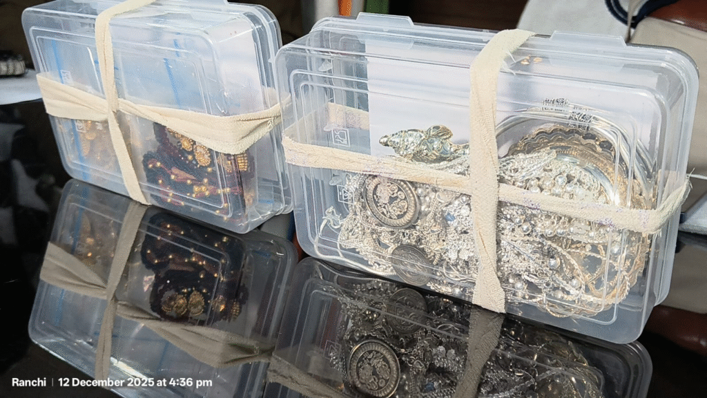 दिनांक 08.12.2025 को निलय प्रकाश, पता जयप्रकाश नगर बूटी मोड़ थाना सदर जिला राँची अपनी पत्नी के साथ डी.ए.वी. बरियातु के पास स्थित बैंक ऑफ इण्डिया, शाखा गये थे तथा अपने लॉकर में रखे जेवरात को निकालकर अपने चारपहिया वाहन से घर आ रहे थे, जब वे अपने घर के गेट पर पहुँचे तो उनकी पत्नी जेवर का बैग कंधे में रखे हुए अपने घर का गेट खोलने लगी ताकि उनके पति कार को घर के अन्दर ले जा सके, इसी दौरान एक मोटरसाईकिल पर सवार दो व्यक्ति अचानक से उनकी पत्नी के कंधे पर लटकाये बैग को झपट कर भाग गये, जिसके पश्चात निलय प्रकाश द्वारा इस घटना की सूचना सदर थाना को दिया गया जिसपर सदर थाना काण्ड सं0-596/25, दिनांक 08.12.2025 धारा 304(2)/74/76/126(2) /115(2)/117(2)/109(1)3(5) BNS मोटर साईकिल सवार दो अज्ञात के विरूद्ध दर्ज किया गया। श्री राकेश रंजन, (भा.पु.से.), वरीय पुलिस अधीक्षक, राँची द्वारा छिनतई की घटनाओं के संबंध में लगातार दिये जा रहे निर्देश के आलोक में छिनतई के काण्डों को त्वरित उदभेदन हेतु श्री पारस राणा, (भा.पु.से.) पुलिस अधीक्षक, नगर राँची के नियंत्रण में पुलिस उपाधीक्षक, सदर रॉची के नेतृत्व में एक विशेष टीम का गठन किया गया। विशेष टीम द्वारा तकनीकी शाखा से लगातार संपर्क में रहकर तकनीकी अनुसंधान के क्रम में कोढ़ा गैंग की संलिप्तता की आसूचना प्राप्त हुई। जिसके पश्चात पु.नि. सह थाना प्रभारी, सदर थाना के नेतृत्व में एक टीम को आसूचना का सत्यापन एवं आवश्यक कारवाई हेतु कटिहार भेजा गया। छामापारी दल के द्वारा स्थानीय थाना के सहयोग से त्वरित कारवाई करते हुए आसूचना के आलोक में ग्राम जुराबगंज, थाना कोढ़ा, जिला कटिहार (बिहार) स्थित रामकुमार यादव के घर पर दबिश देते हुए घर की तालाशी ली गयी। घर की तलाशी के दौरान घटना में छिनतई हुए सभी जेवरातों (सोना-425 ग्राम एवं चाँदी 450 ग्राम, जिसका मूल्य करीब 55-60 लाख रूपये) को बरामद किया गया है घटना में संलिप्त अभियुक्त रामकुमार यादव एवं अन्य की पहचान की गयी है, गिरफ्तारी हेतु छापामारी की जा रही है।